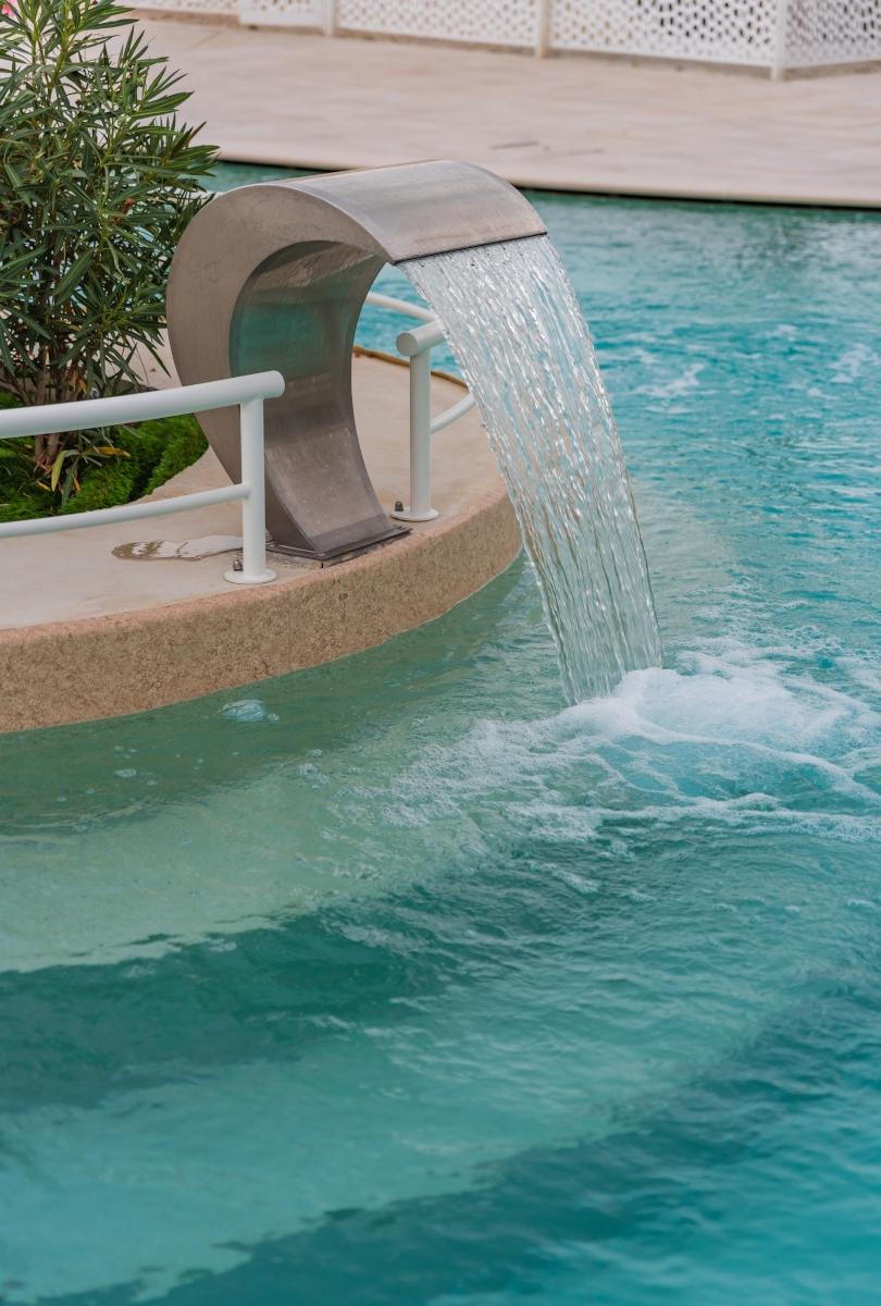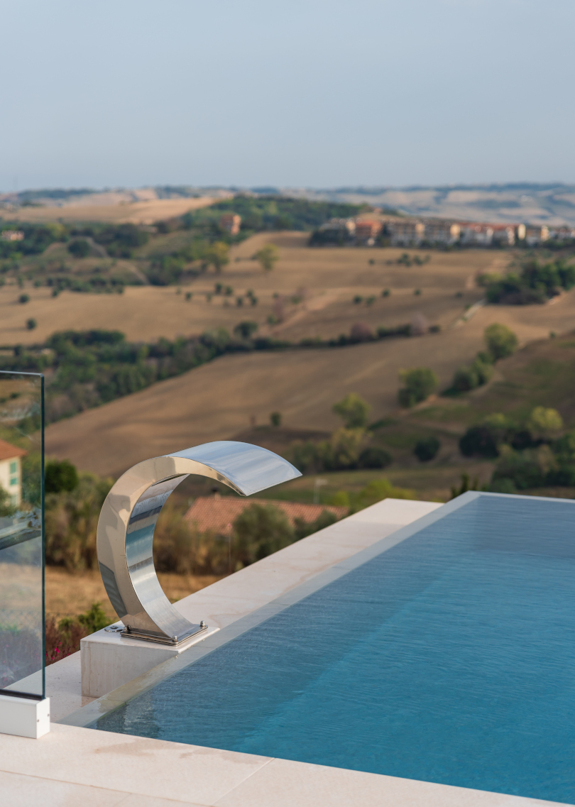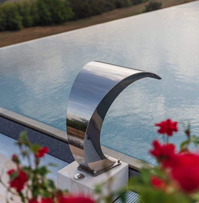 Le fontane per piscina, così come le cascate, trasformano il vostro specchio d’acqua in un luogo di benessere davvero completo, da osservare ed ascoltare. Semplici, a cigno o a lama d’acqua, sono ottime per dar luogo a suggestive ambientazioni, e possono essere installate a bordo vasca per utilizzarle come massaggio cervicale e dorsale e per completare la zona benessere con un tocco di personalità.