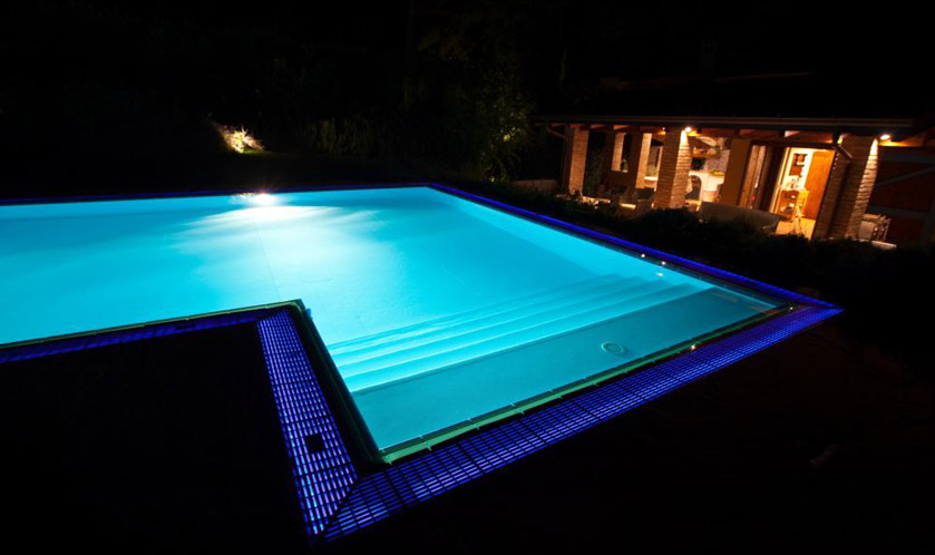 Anche le luci per l’illuminazione della piscina, non solo aggiungono un tocco scenografico, ma sono indispensabili per la vostra sicurezza e quella dei vostri ospiti ogni volta che decidete di fare il bagno di sera. Le proposte per una perfetta illuminazione della vasca sono moltissime: si parte dai tradizionali fari a led bianchi incassati nella parete, ai fari a led colorati e regolabili, alla retro illuminazione del canale di sfioro fino al faro lineare Blade Light studiato sulla base delle più attuali linee stilistiche e di progettazione della luce con colorazioni personalizzabili.