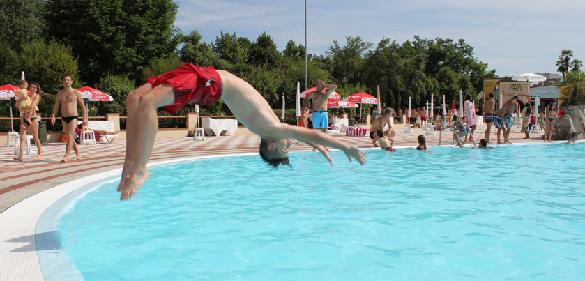 Tuffi: Prevedete 3 tuffi a testa: uno a bomba, un fichetto e uno libero. Nel primo il punteggio sarà maggiore alla maggior quantità di acqua spostata, nel secondo al miglior ingresso in acqua e nel terzo ovviamente alla creatività. Assegnate i punti con i fogli numerati e sommate il tutto.