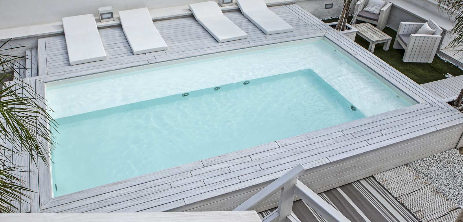 In Puglia, a Cala Porto Rosso, abbiamo realizzato una piscina di classe. La forma è quella più semplice, quella rettangolare, ma sono i dettagli a renderla davvero speciale. È realizzata con la tecnologia BlueStyle che ci permette di realizzare una vasca leggera e robusta, resistente nel tempo e a ridotto impatto ambientale. Le finiture bianche, dal rivestimento interno della vasca in PVC alla zona solarium, contribuiscono a creare un’atmosfera minimal-chic. Il tocco di classe? La piscina è dotata di getti idromassaggio: per godersi il panorama sulla costa adriatica avvolti nelle coccole delle bolle.