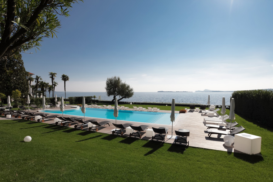 Un lungo giardino di circa 6 metri separa le due famose piscine: la più grande misura 40×15,5 metri, mentre la più piccola 28×15,5 metri. L’acqua tuttora arriva alla piscina attraverso un condotto sotterraneo e viene filtrata prima di essere immessa nella vasca.