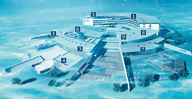 Il progetto prevede un Hotel 4 stelle, con 320 posti letto, Spa Hotel e Spa giornaliera con la zona aperta a tutti i visitatori giornalieri, un mondo con saune e ristoranti, che si estende su una superficie di circa 48.000m ² e una superficie totale d’acqua  di oltre  1.000 m ².