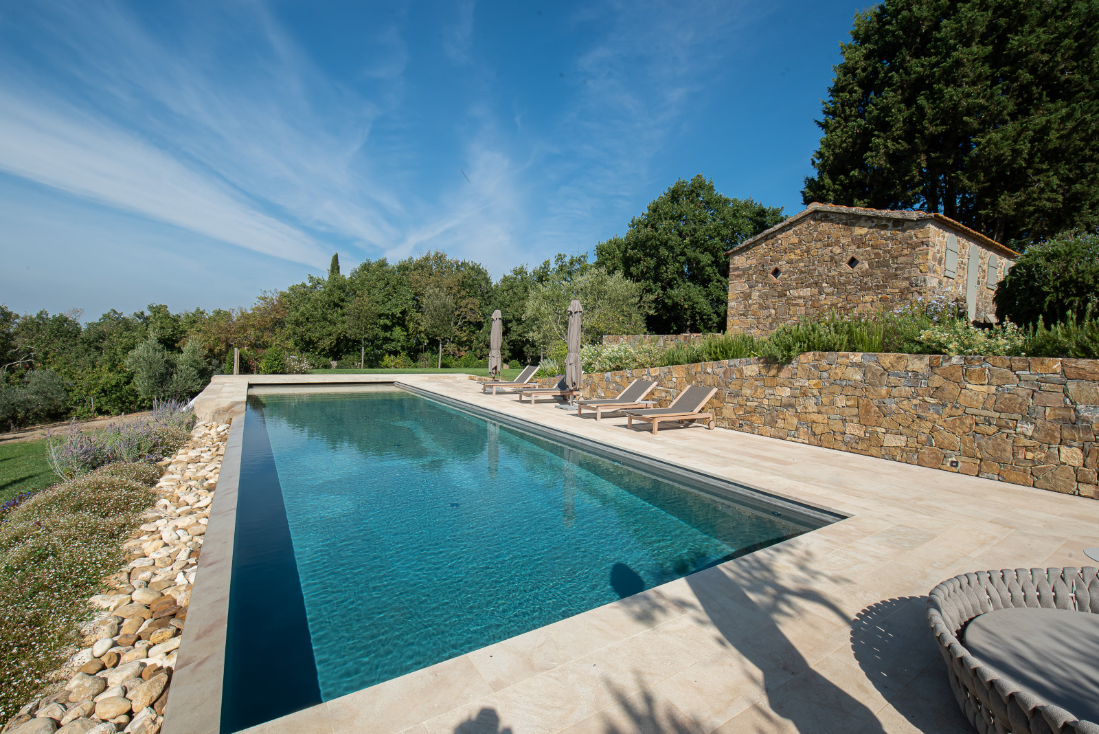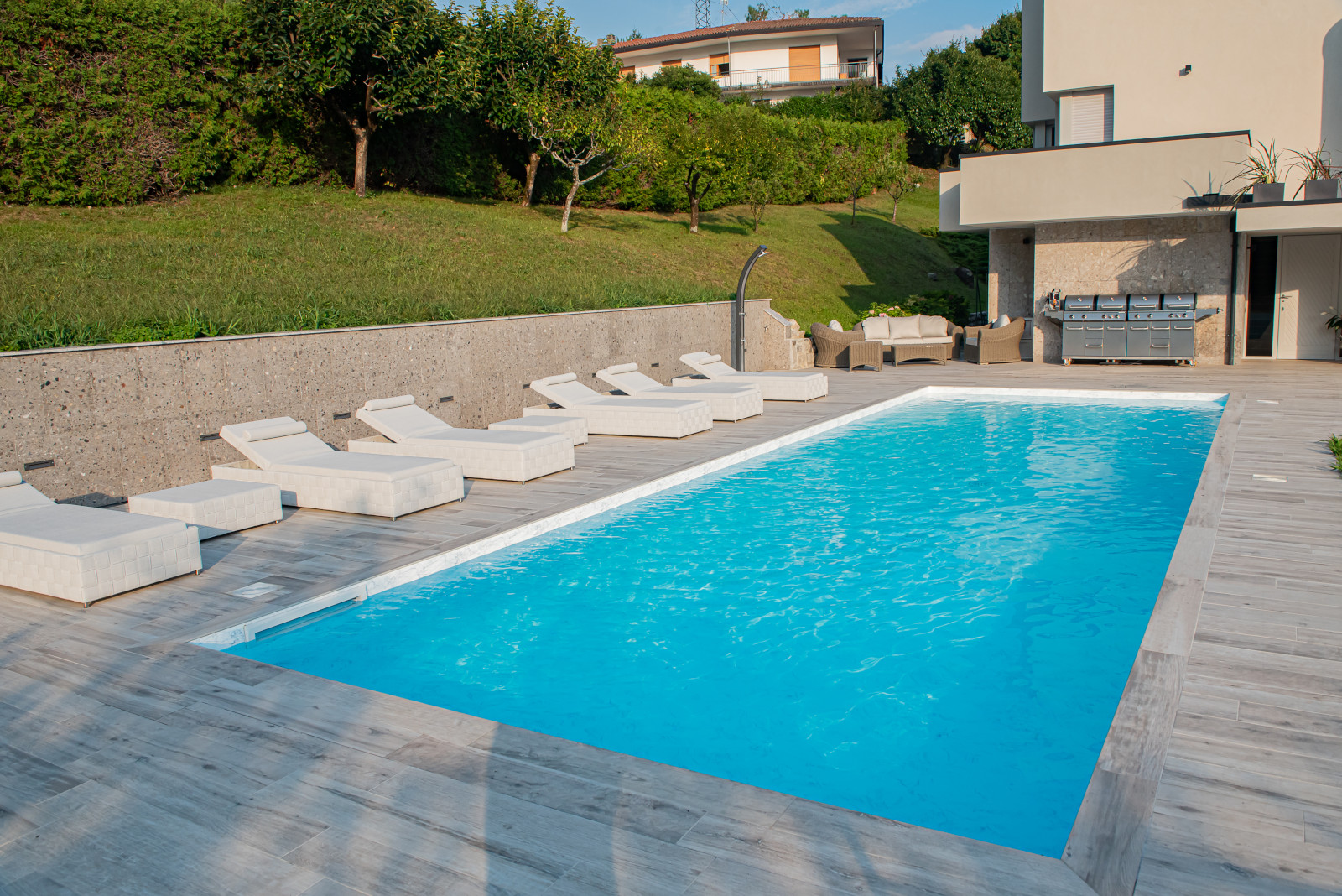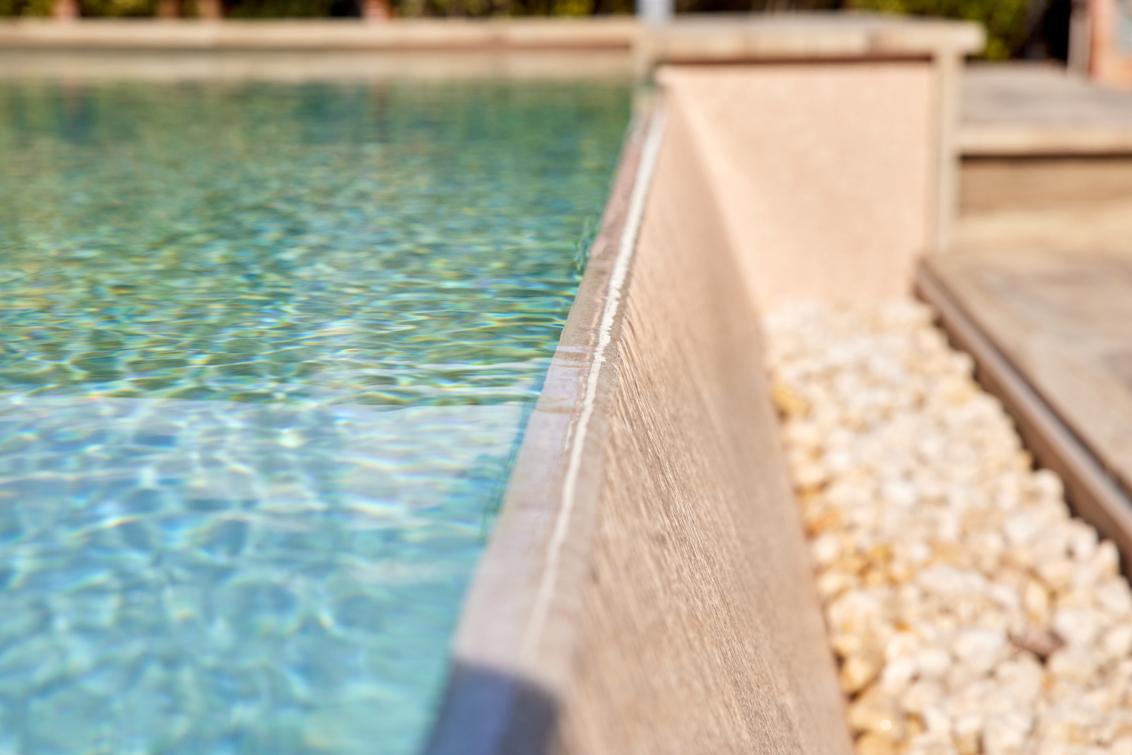 Le piscine con telo Touch relax combinano l’estetica del rivestimento in pietra con le performance del PVC: bellezza, eleganza e carattere con una finitura in rilievo sorprendente al tatto e alla vista.