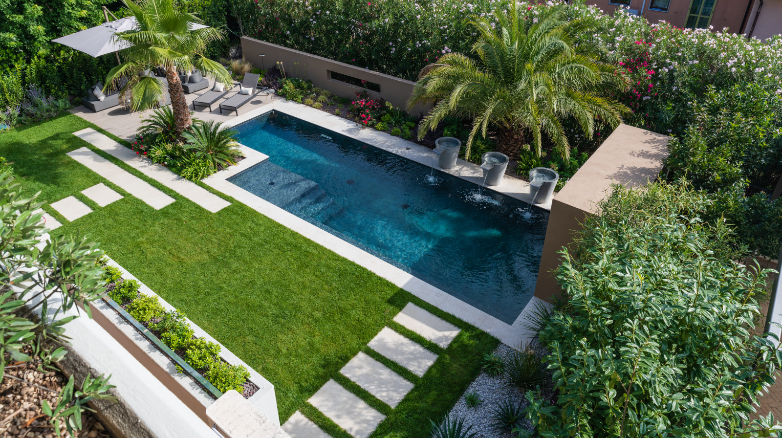 Piscine con rivestimento che riproduce elementi naturali