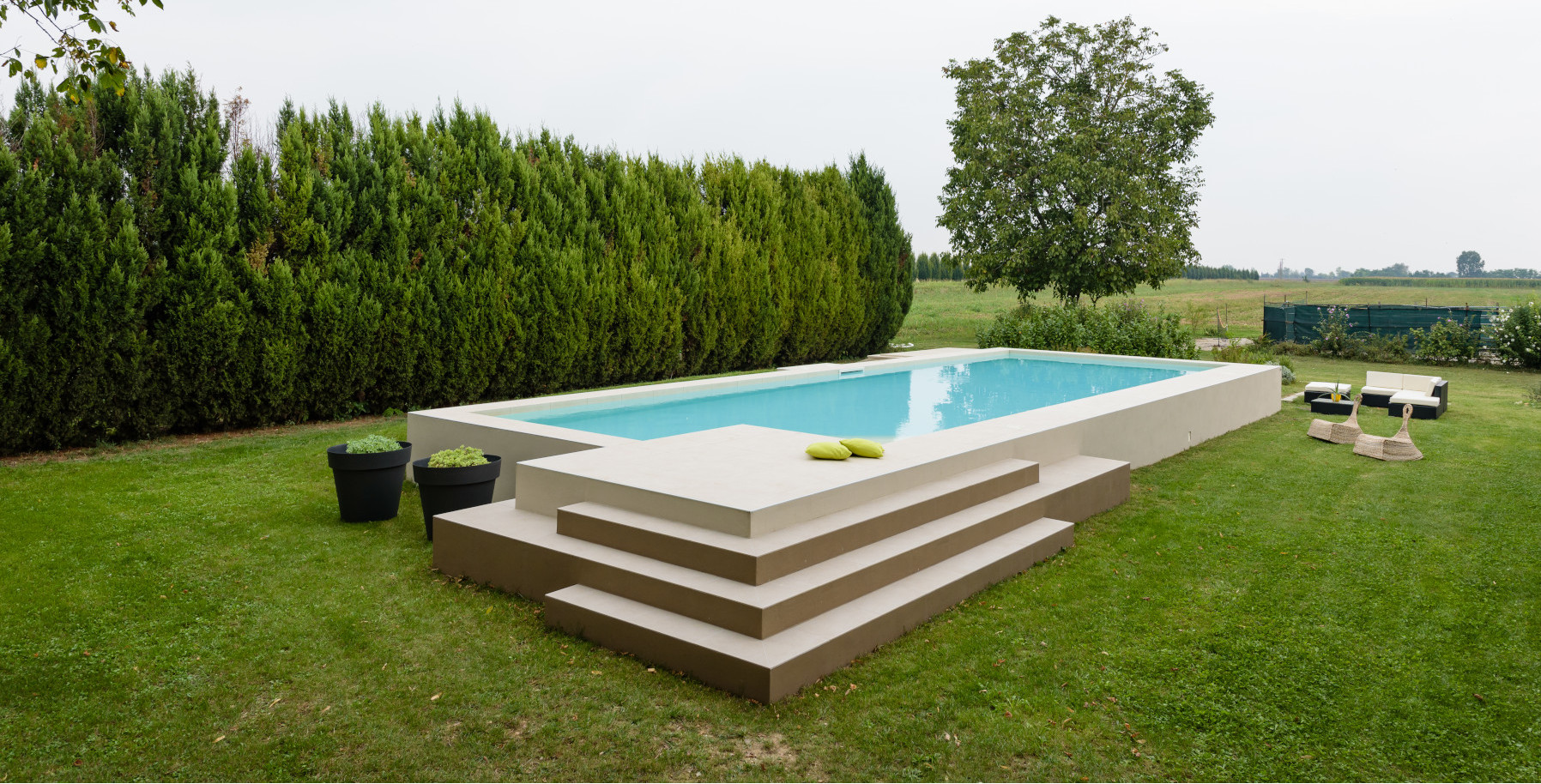 Perfetta anche in caso di terreni in pendio, una piscina fuori terra di design Piscine Castiglione è totalmente personalizzabile: puoi scegliere di impreziosirla con finiture di pregio o renderla ancora più accogliente prediligendo materiali naturali come la pietra o il legno. Inoltre scalinate, soppalchi, anche a più livelli da utilizzare come zone solarium aggiungeranno carattere e renderanno la nuova piscina davvero tua.