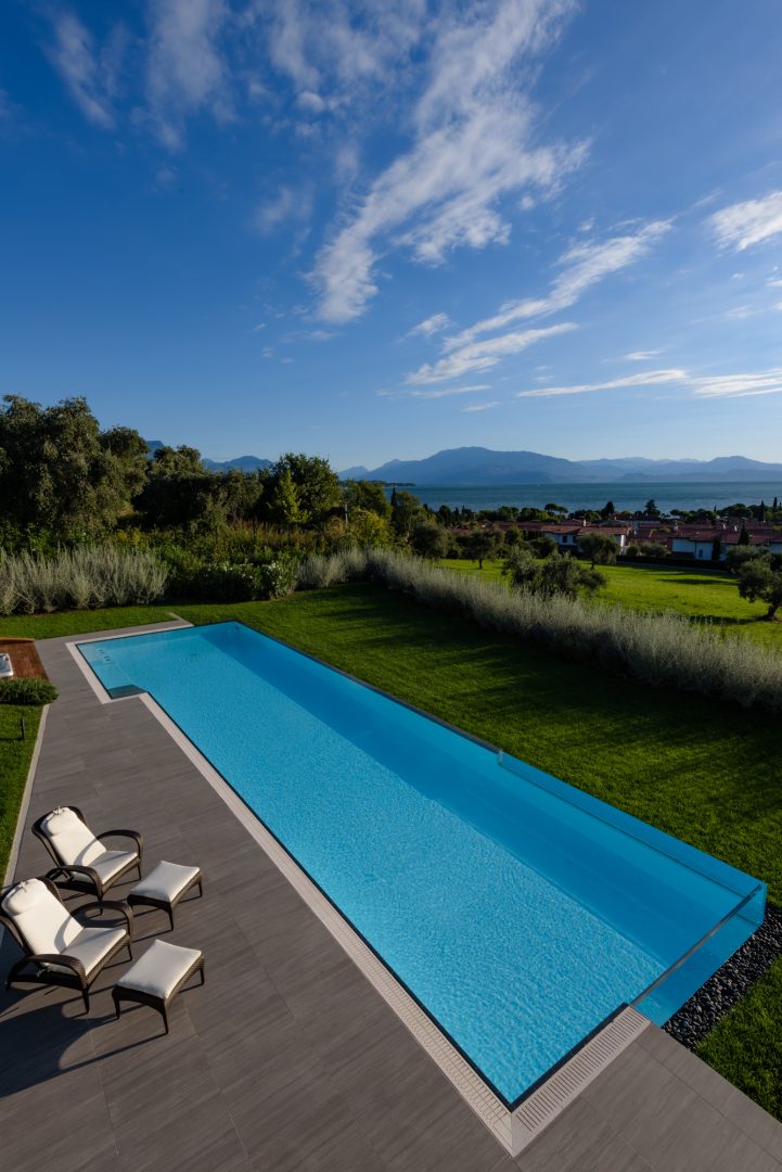 Scegliere una piscina sportiva non vuol dire rinunciare a classe ed eleganza: può essere rifinita con materiali di pregio, che ne esaltano lo stile, e integrata con idromassaggio ed eleganti fontane cervicali per rilassare la muscolatura a fine esercizio e garantire un completo benessere.
