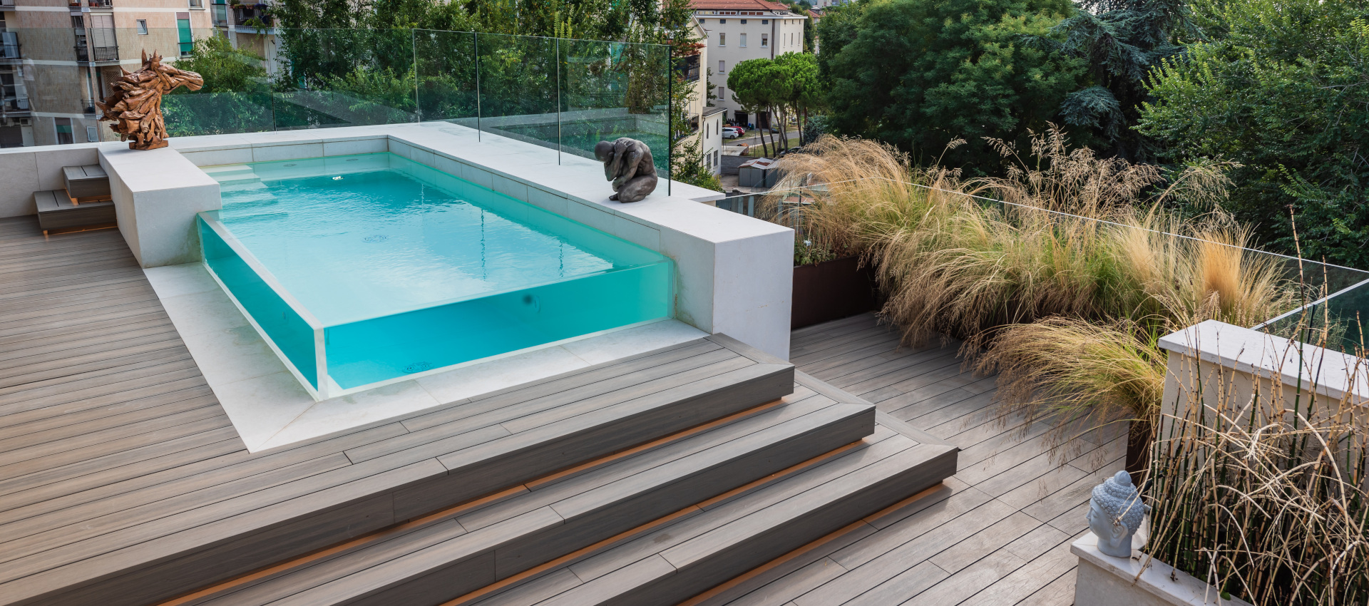 Le piscine su terrazzi valorizzano gli immobili con un tocco di classe ed eleganza.