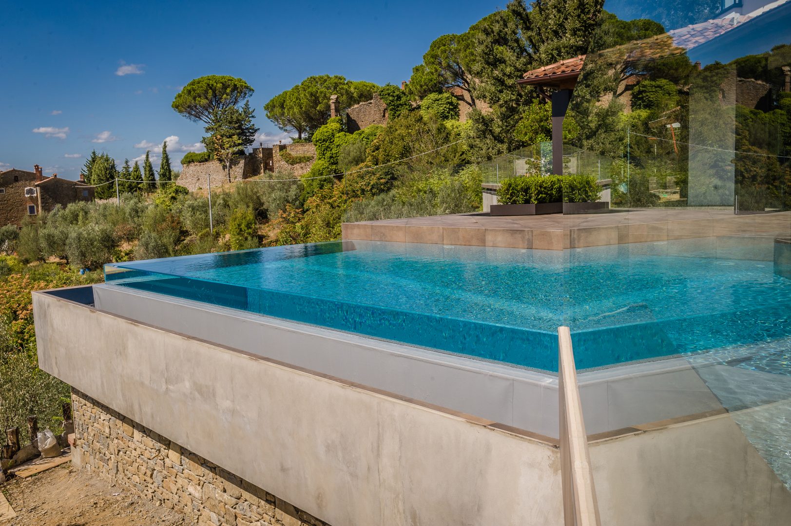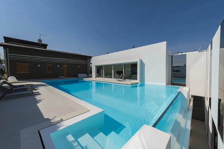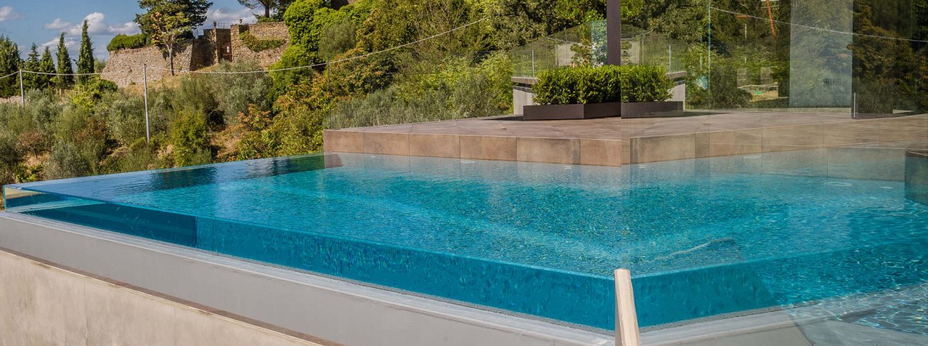 Utilizzato anche per i finestrini degli aerei, il metacrilato è un materiale dalle eccellenti proprietà: del tutto simile al vetro per trasparenza ma più flessibile per abbinarsi sapientemente alle strutture in acciaio di Piscine Castiglione, anch’esse flessibili e adatte ad ogni condizione. Inoltre, a differenza del vetro, il metacrilato non assorbe umidità, può essere saldato e, più leggero, è più facilmente trasportabile.