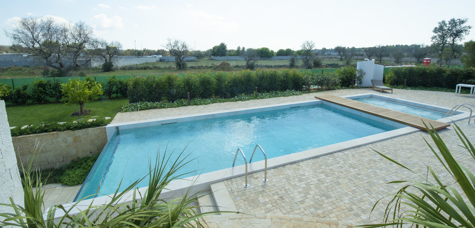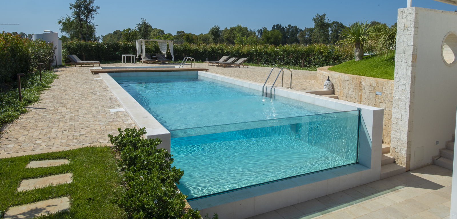 In un tipico borgo del Salento, tra terreni coltivati a olivi e viti, Piscine Castiglione ha realizzato una piscina circondata da una zona solarium curata in ogni dettaglio.