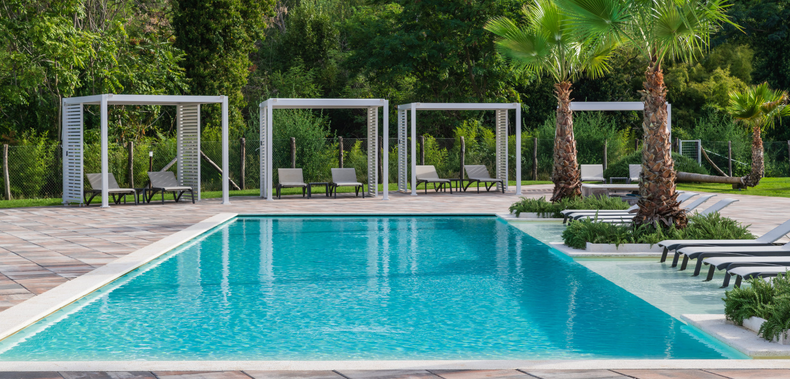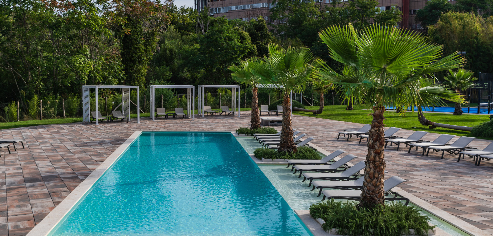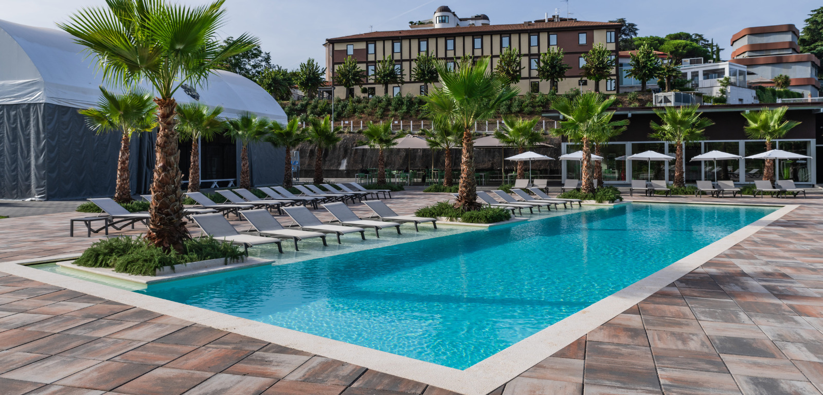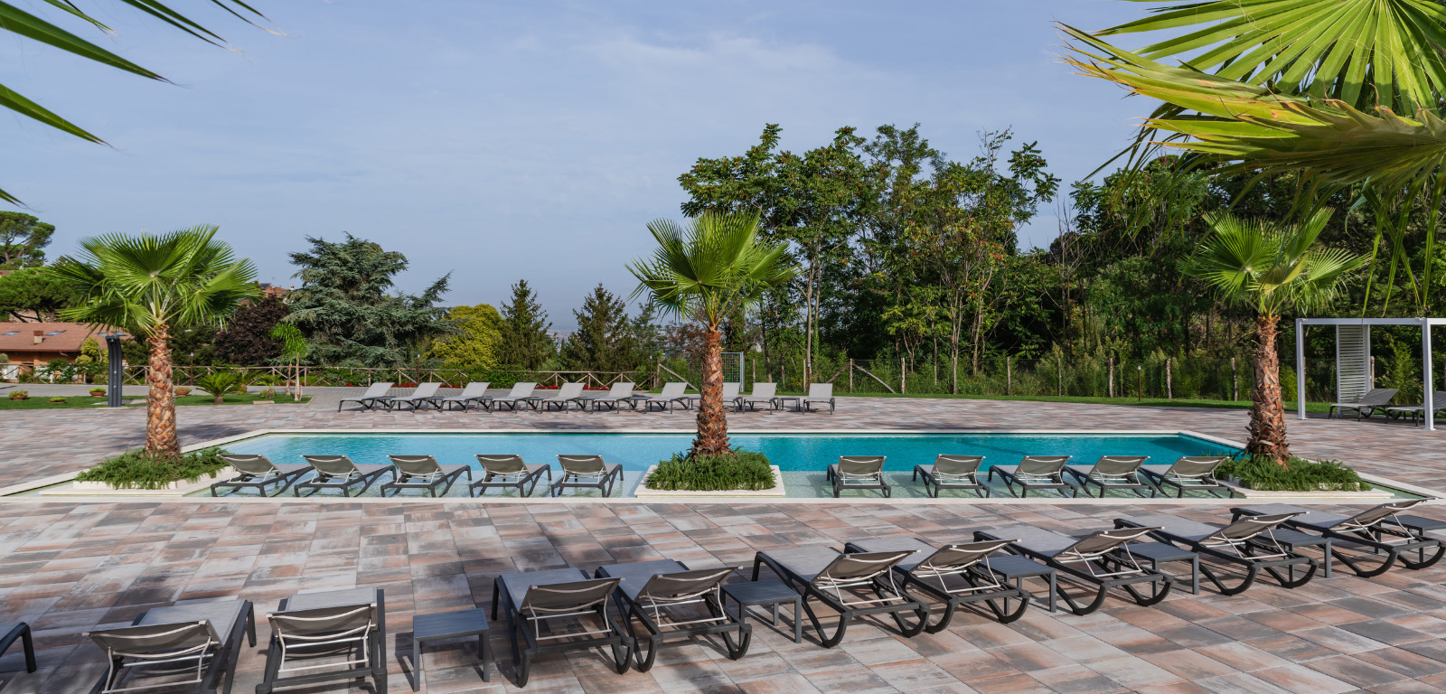 Installata in una compagnia alberghiera a Frascati, a pochi chilometri da Roma, questa piscina con sfioro nascosto Freedom crea un effetto estetico ricercato.