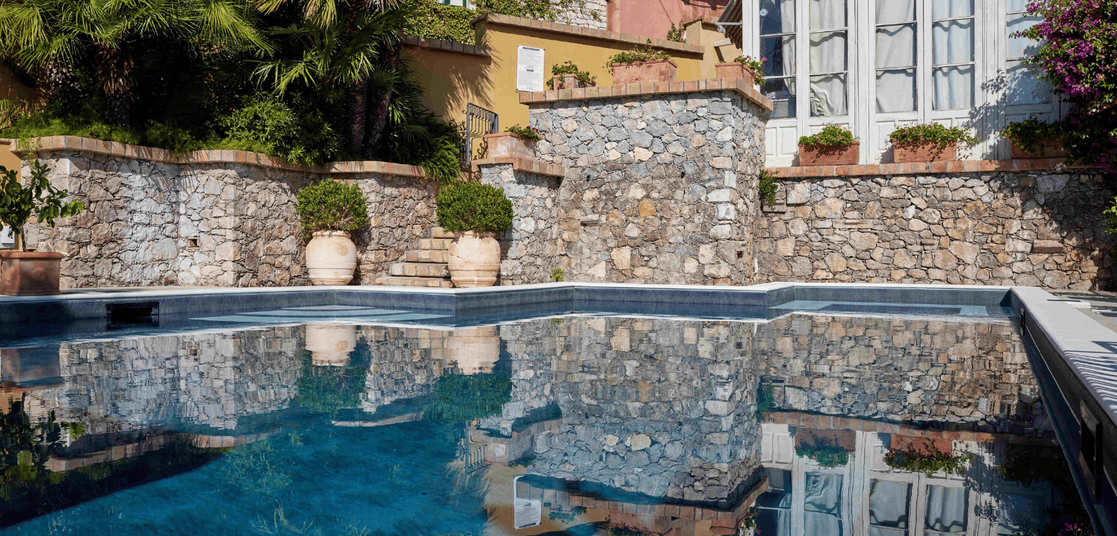 Nel suggestivo scenario di Taormina, dove il blu del mare si incontra con le bellezze della città, sorge una piscina che unisce design sofisticato e comfort esclusivo. Realizzata per l’Hotel Villa Carlotta, questa vasca dalla forma non regolare si estende su una superficie di 83 mq, perfettamente integrata nell’ambiente circostante.
