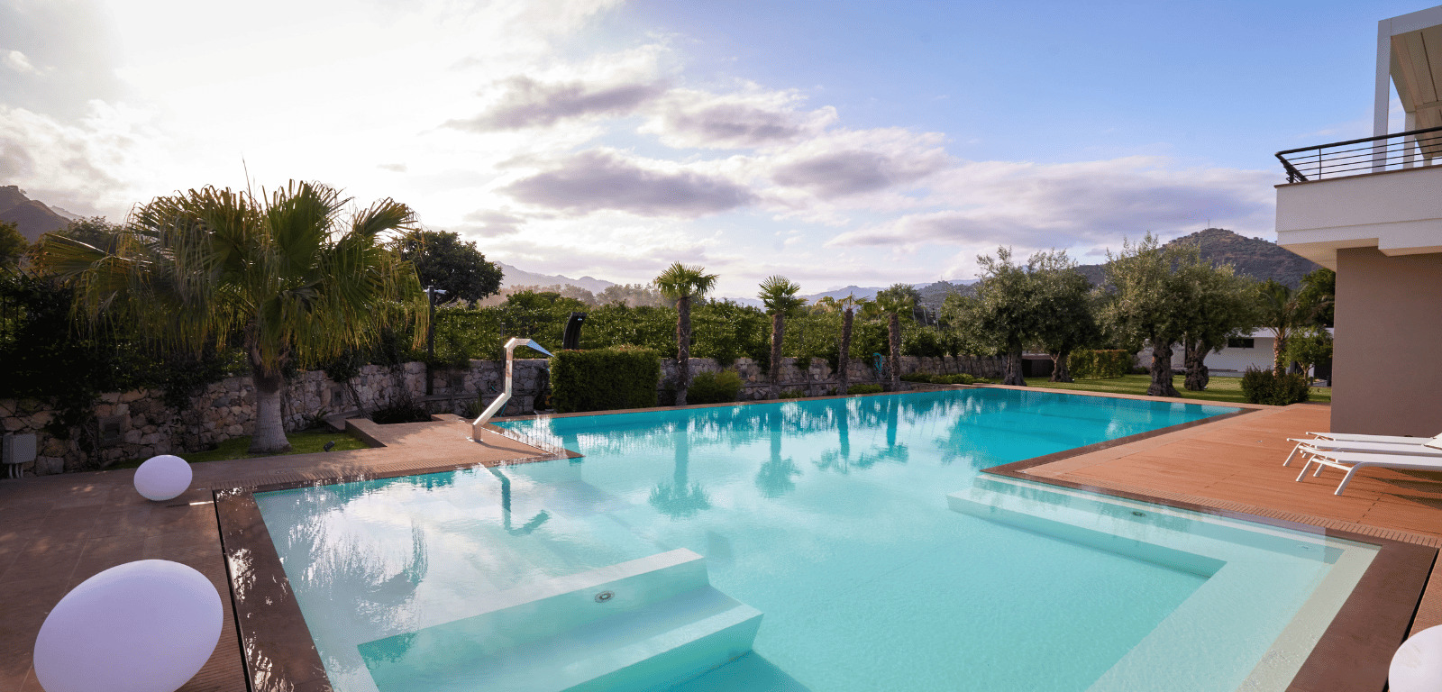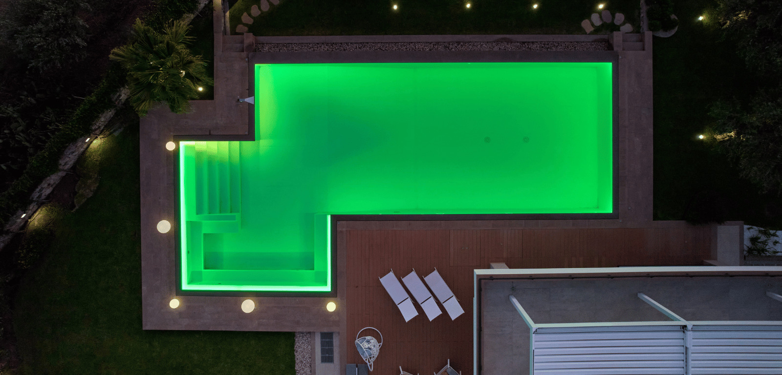 A Taormina, con il maestoso Etna sullo sfondo, sorge una piscina privata che incanta per eleganza e originalità. Una vasca rettangolare da 108 mq che combina linee moderne e dettagli unici per offrire un’esperienza esclusiva.