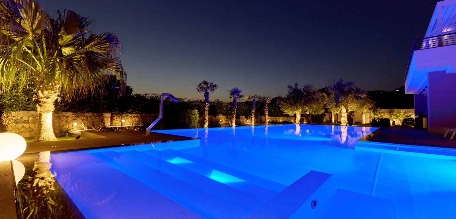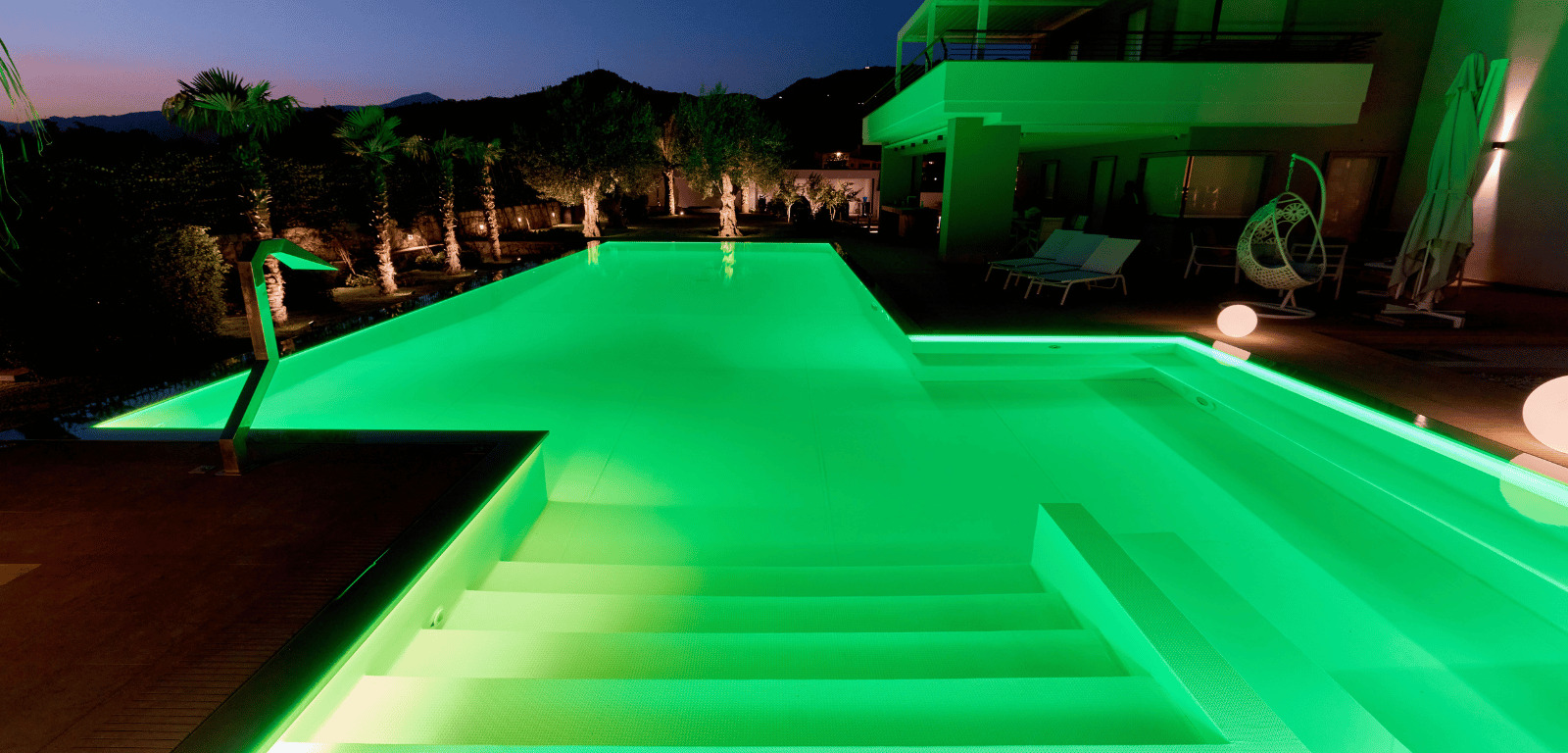 Un elemento distintivo è lo sfioro a cascata, impreziosito da un rivestimento creativo realizzato con gli avanzi delle mattonelle del marciapiede, che dona un carattere unico alla piscina. L’illuminazione a LED sotto bordo, che percorre tutto il perimetro, crea un’atmosfera magica nelle ore serali, trasformando la piscina in un punto focale del giardino. Con la sua vista mozzafiato sull’Etna e il design accurato, questa piscina rappresenta il perfetto connubio tra stile, comfort e funzionalità, un rifugio ideale per chi cerca momenti di tranquillità immersi in un paesaggio straordinario.