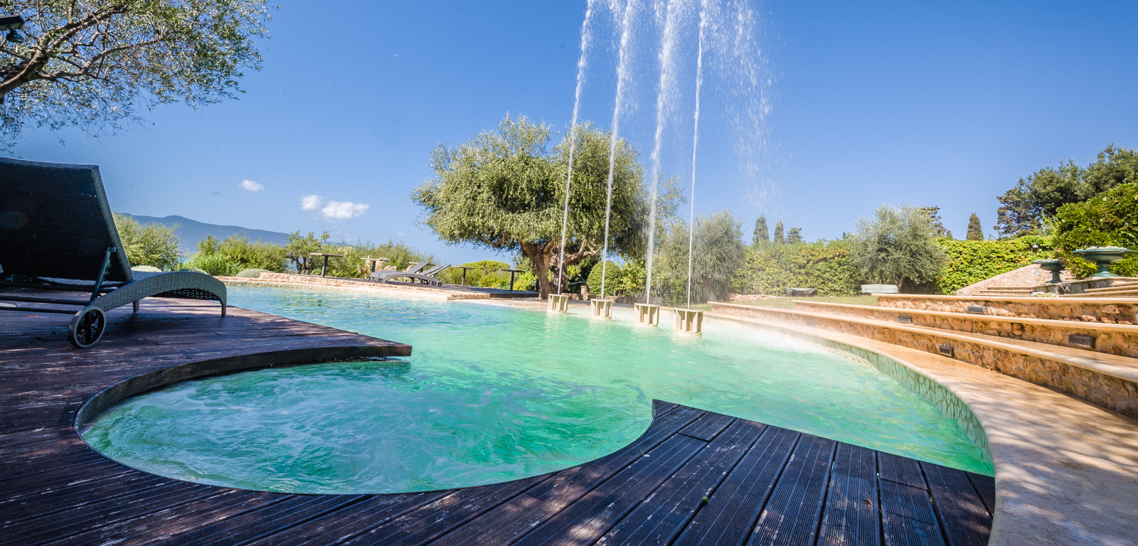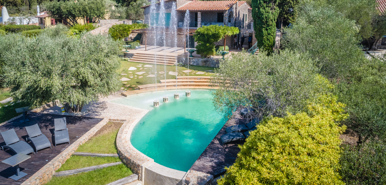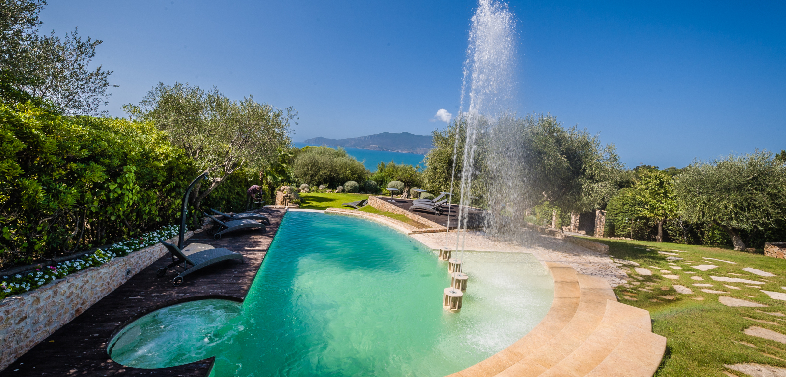 Nella bellezza del paesaggio toscano, abbiamo realizzato una piscina a forma libera e con profondità variabile. Completa di getti a fontana, di impianto di riscaldamento e di una piccola area idromassaggio, la vasca è una piccola perla che gode di uno spettacolare affaccio sul mare.